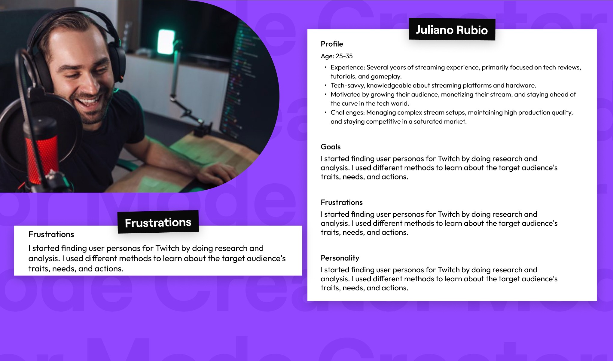With cutting-edge tools and features, Twitch supports streamers in growing their channels, monetizing their content, and creating immersive live experiences. The platform serves a diverse user base, from casual viewers to professional content creators, making it a dynamic and ever-evolving ecosystem of interaction, engagement, and collaboration. My work at Twitch focused on enhancing these experiences, crafting user-centered solutions that made streaming more accessible, enjoyable, and impactful for creators and their audiences alike.
